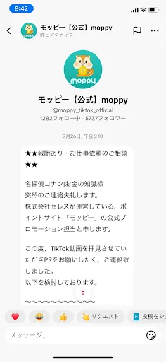 - 例えば、私の場合だと企業のPR案件をDMで依頼がありました。この時は、フォロワー数による報酬とユーザーの登録数に応じた報酬をいただくことができました。