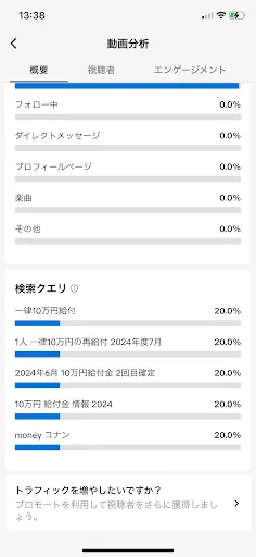 - 例えば、2024年にあった給付金に関する情報を求めているターゲットが検索しているキーワードを考えてみましょう。ハッシュタグのボリュームだけで考えると「#お金の知識」が28600以上、「#お金の知識」が78500以上あります。しかし、ターゲットの検索しているキーワードを見てみると「一律10万給付金」などがあげられます。このようにハッシュタグのボリュームだけでなく、ユーザーがどのように自分の投稿に辿り着いているかを考えてハッシュタグを選ぶことが重要となります。